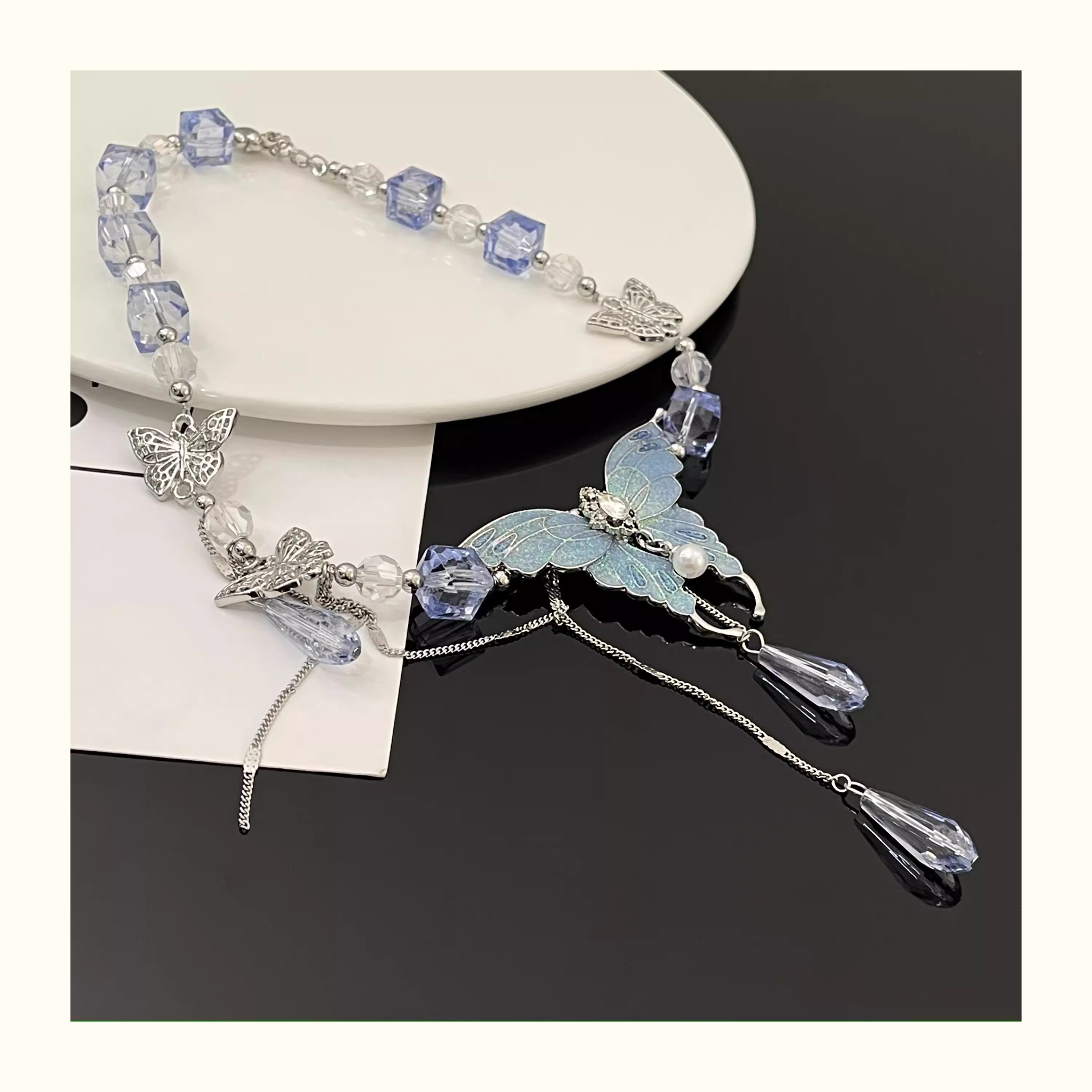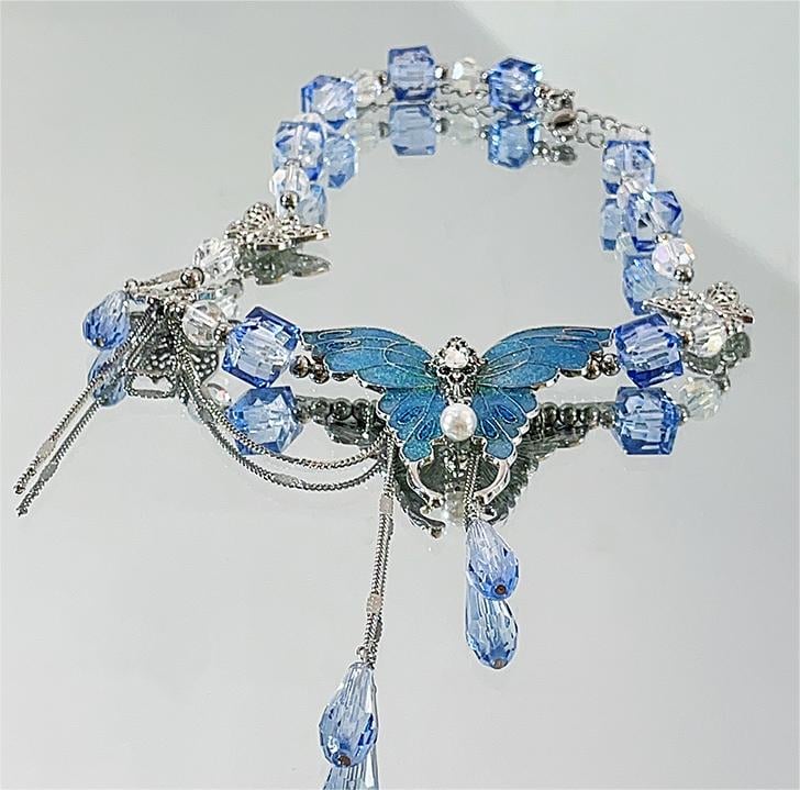 Elevate your style with our exquisite Blue Crystal Butterfly Necklace Choker. Crafted with precision and adorned with shimmering crystals, this choker adds a touch of elegance to any outfit. The delicate butterfly design symbolizes grace and beauty, making it a perfect accessory for special occasions or everyday glamour.