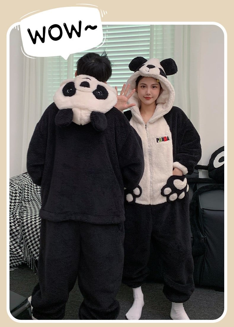 Soft Fleece Panda Hoodie Onesie Couple Pajama