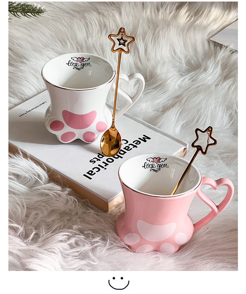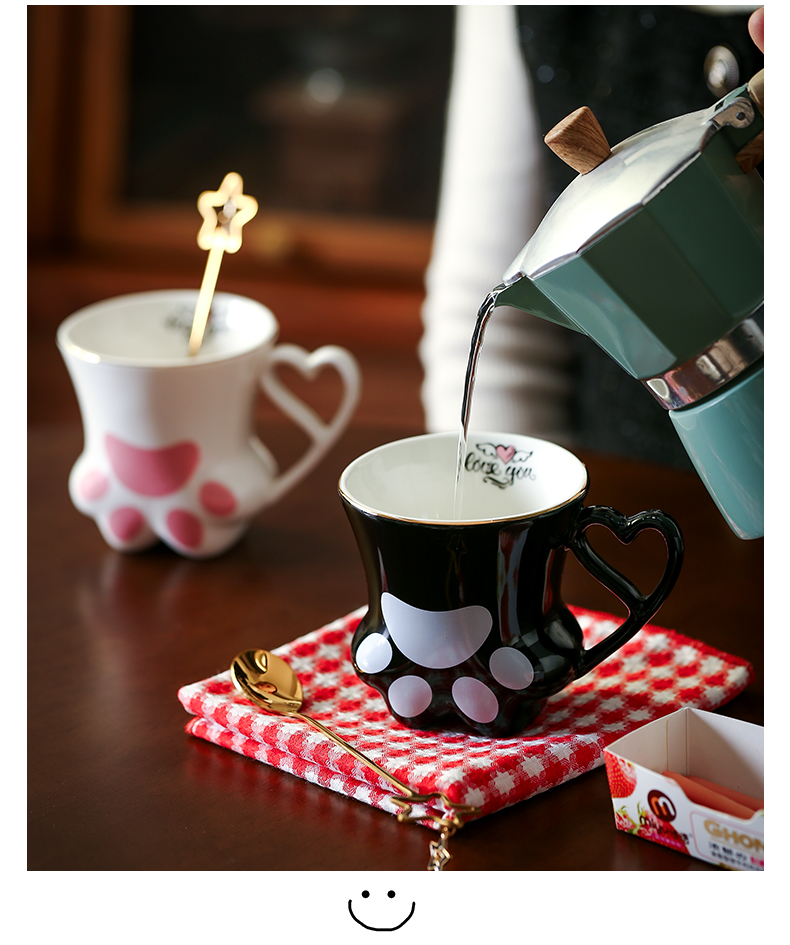 Meow your way to a purrfect cuppa! This adorable mug features a love-shaped handle and a charming cat paw print design. Makes every sip a cuddle with your feline friend.