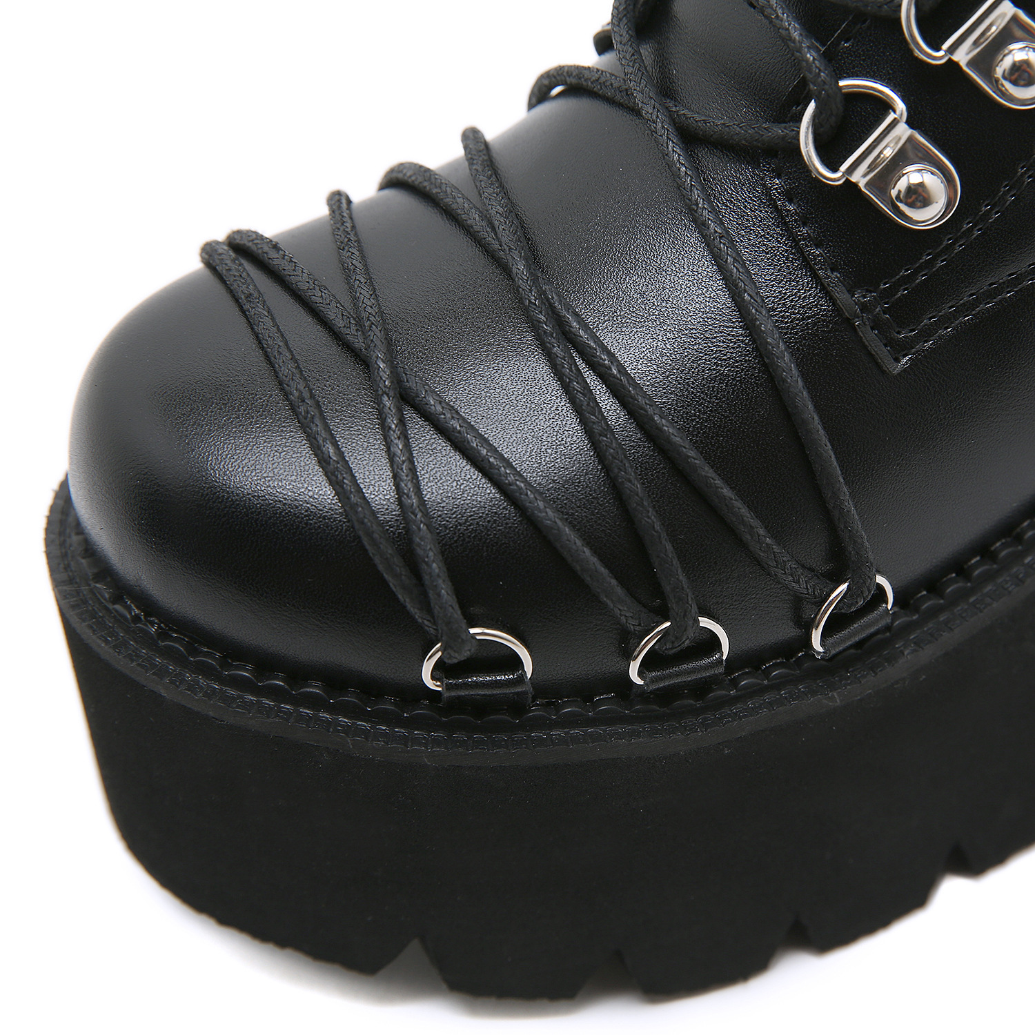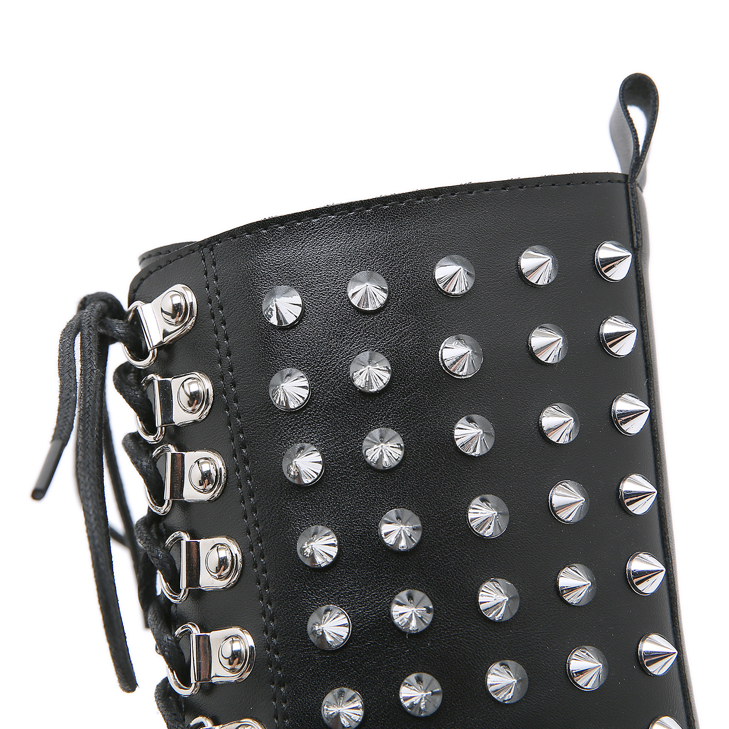 Punk Rivets Lace Up Heeled Boots - BLACK