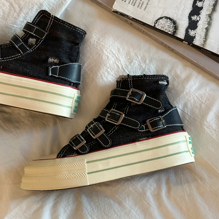 Elevate your street style with our classic Velcro Belted High-Top Canvas Shoes. These timeless sneakers feature a durable canvas upper, ensuring both comfort and style. The iconic Velcro straps offer a secure and adjustable fit, while the high-top design adds a touch of retro cool. Whether you're exploring the city or chilling with friends, these shoes are a versatile and stylish choice.