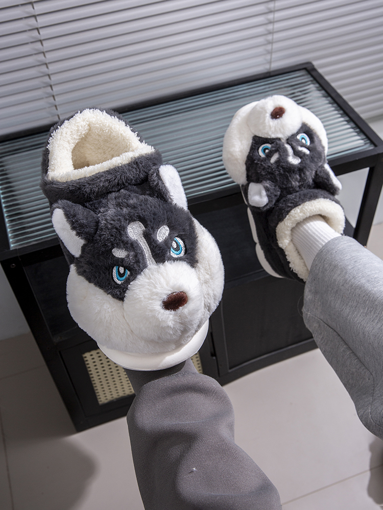 Indulge your love for furry friends with our adorable Husky Fuzzy Slippers. These cozy and plush slippers are designed to keep your feet warm and comfy all day long. Featuring a soft, faux fur exterior and a comfy, non-slip sole, these slippers are perfect for lounging around the house or slipping on for a quick trip to the mailbox. The unisex design makes them suitable for everyone, so you can share the love with your furry companion.