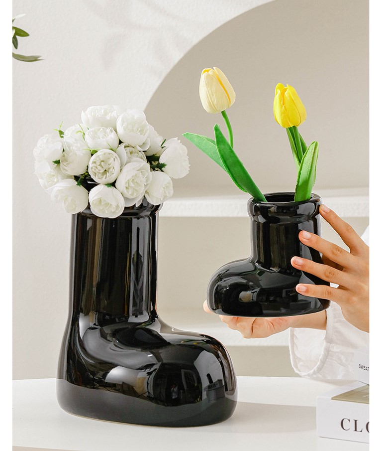 Elevate your home decor with our exquisite Boots Shape Ceramic Flower Vase. This unique and stylish vase is crafted from high-quality ceramic, ensuring durability and a timeless appeal. Its distinctive boot shape adds a touch of whimsy and originality to any space. Perfect for displaying fresh or dried flowers, this vase effortlessly complements various interior design styles. Whether you prefer a minimalist or maximalist approach, our Boots Shape Ceramic Flower Vase is the ideal choice to showcase your floral arrangements.