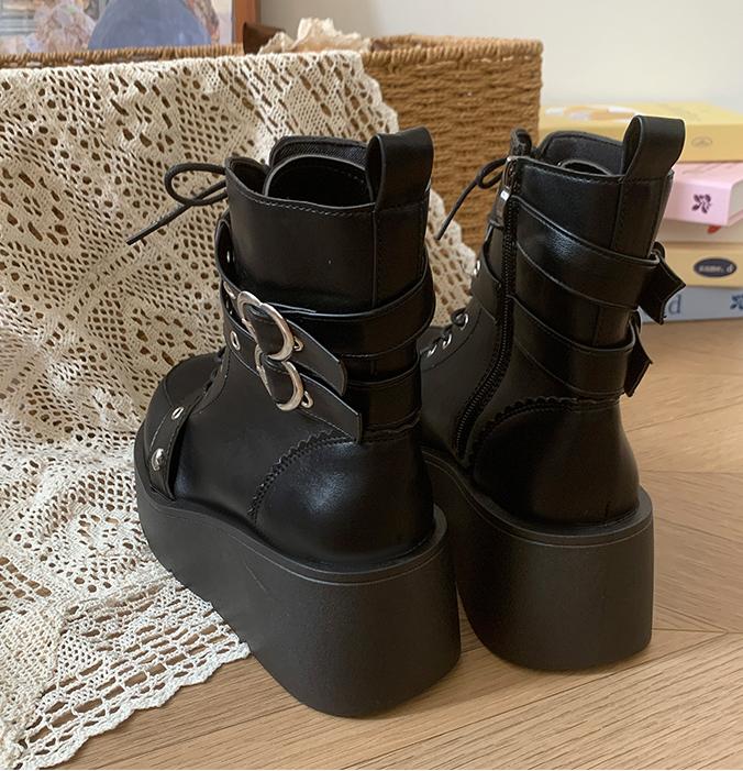 Step into the spotlight with our Gothic Punk Platform Boots, the ultimate statement piece for the bold and fearless. Designed for the Y2K sweet-cool-glam girl, these chunky-heel Martin boots blend gothic punk vibes with a touch of grunge-meets-futuristic edge. Featuring bold buckle straps and a chunky platform sole, these boots are perfect for channeling your inner alt-culture queen. Whether you're hitting the streets, a concert, or a night out, these boots scream confidence and attitude. Pair them with your favorite leather jacket or mini skirt to complete the sweet yet edgy look. Dare to stand out? These boots are your ultimate weapon. Own the night, own the style.