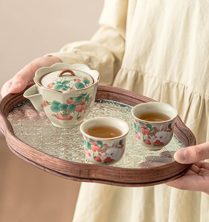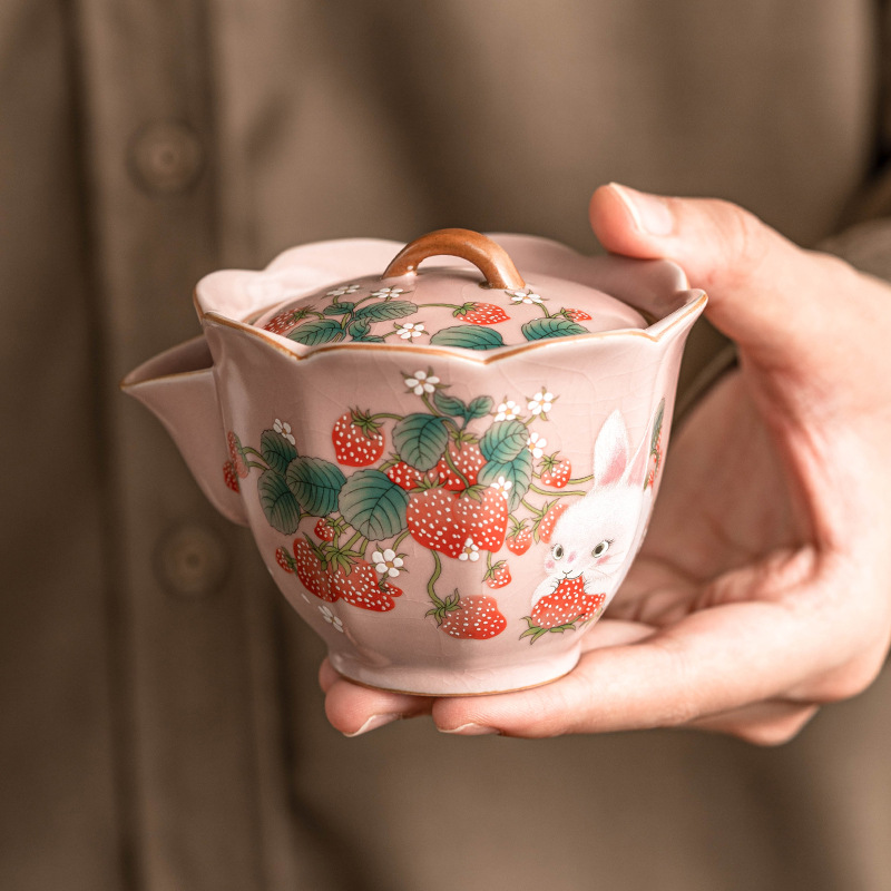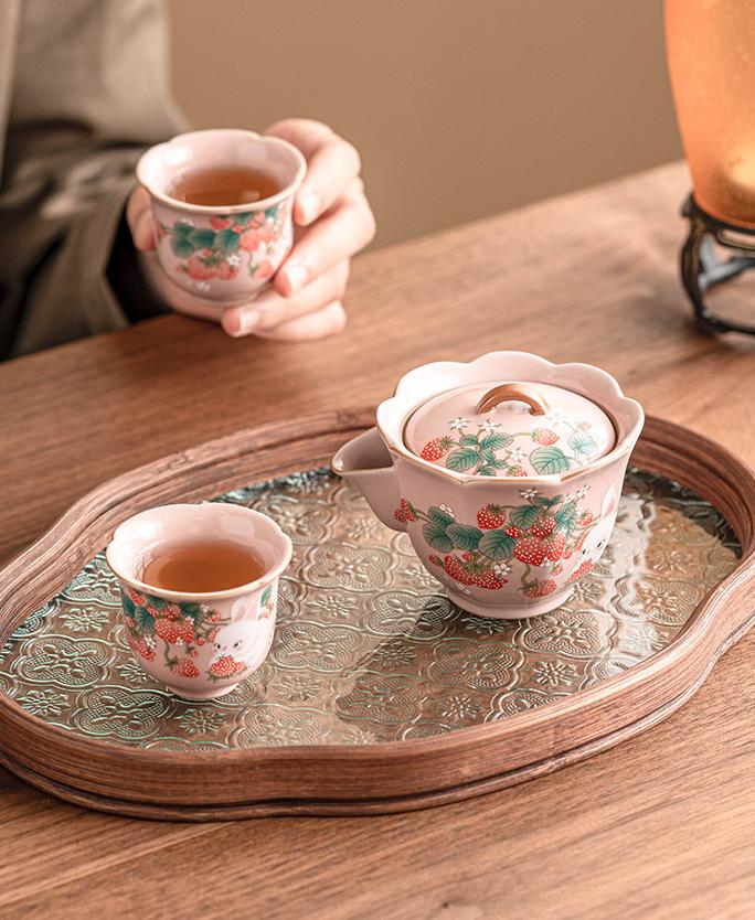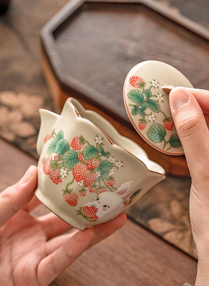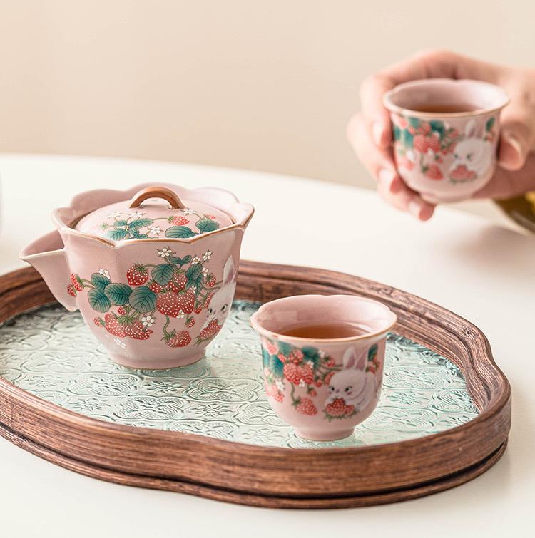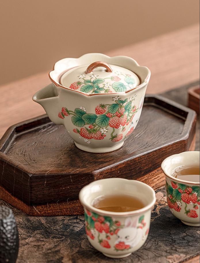 Whether you're enjoying a solitary cup or sharing with a friend, this Vintage Strawberry Rabbit Ceramic Hand-held Tea Pot Mug Set adds a touch of whimsy and sophistication to your tea-time ritual.