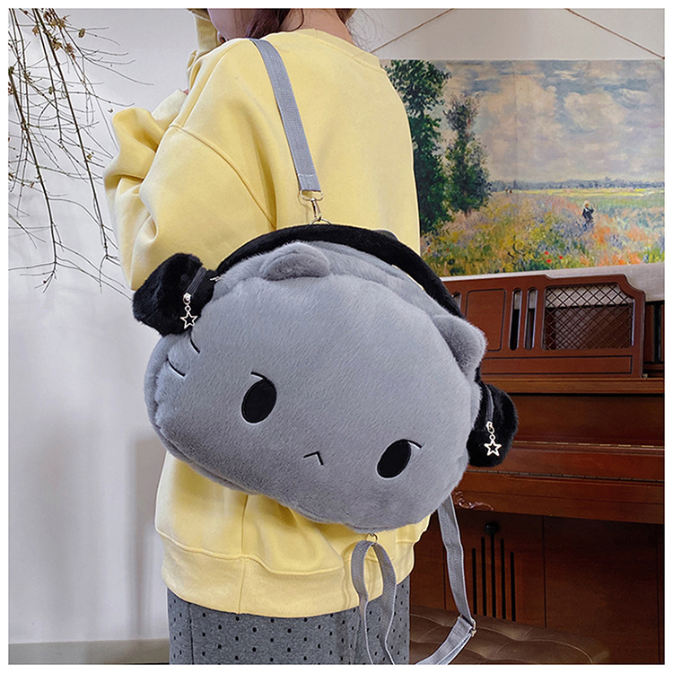 Warning: extreme cuteness ahead! Fall in love with this super soft plush backpack designed like an adorable cat face. The charming kitty even sports stylish decorative headphones for extra personality! It's not just cute; it's a functional bag perfect for carrying your necessities while turning heads. Embrace the cuddly charm and make a sweet statement wherever you go. The ultimate accessory for cat lovers and fans of kawaii style!