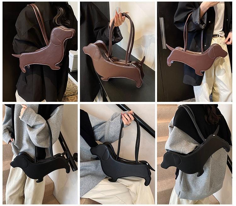 Carry your essentials in style with this uniquely adorable handbag. Shaped like nine playful dachshunds linked together, this eye-catching bag is a true conversation starter. Crafted with quality materials, it's both fun and functional. Perfect for adding a whimsical touch to any outfit and showing off your love for these charming pups. Get ready for compliments wherever you go!