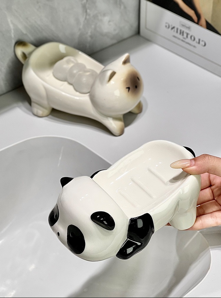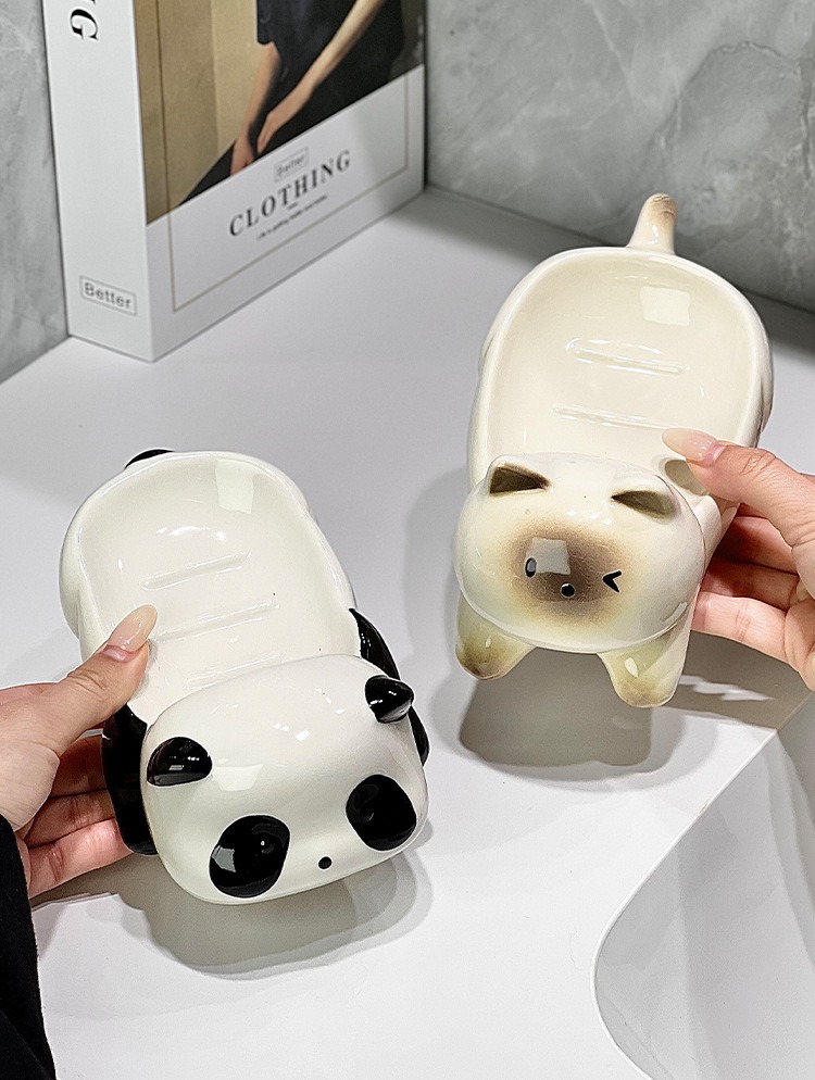 Cute Cat Panda Ceramic Soap Box, Soap Dish