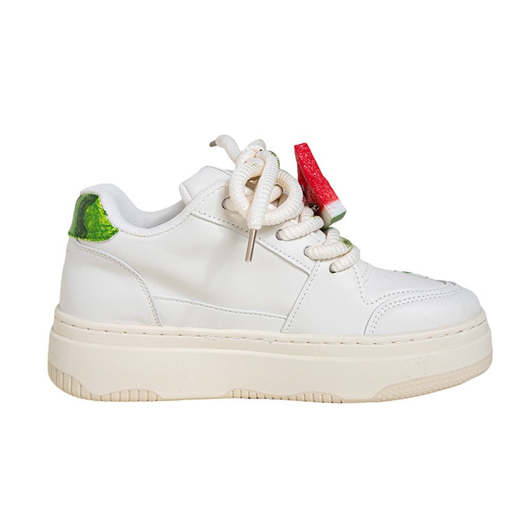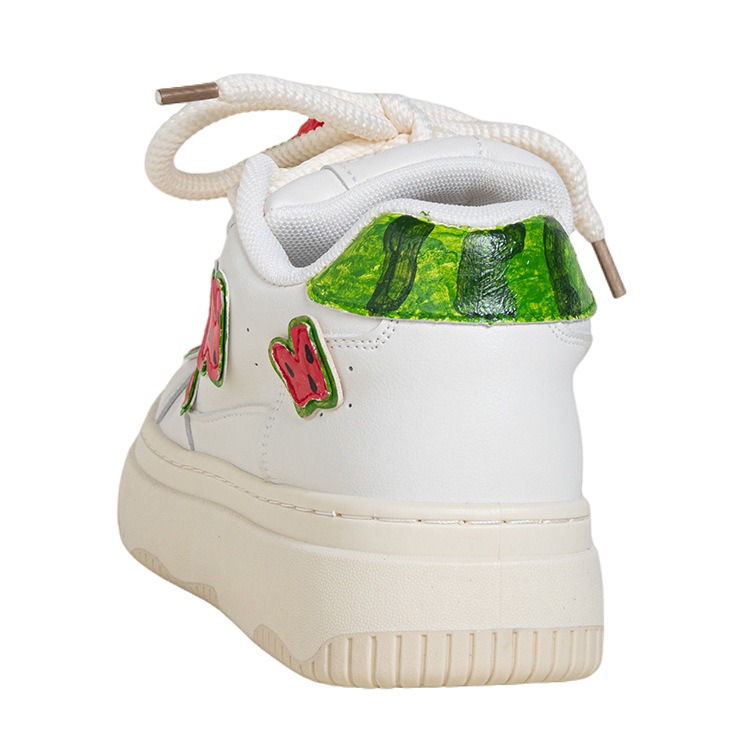 Refresh your footwear collection with these playfully chic casual white shoes, featuring delightful watermelon detailing. Crafted for comfort and style, these versatile sneakers are perfect for adding a pop of summery fun to any outfit. The clean white canvas provides a fresh backdrop for the vibrant watermelon accents, making them an instant eye-catcher. Ideal for everyday wear, these shoes will keep you comfortable and stylish from morning to night.