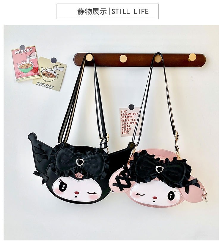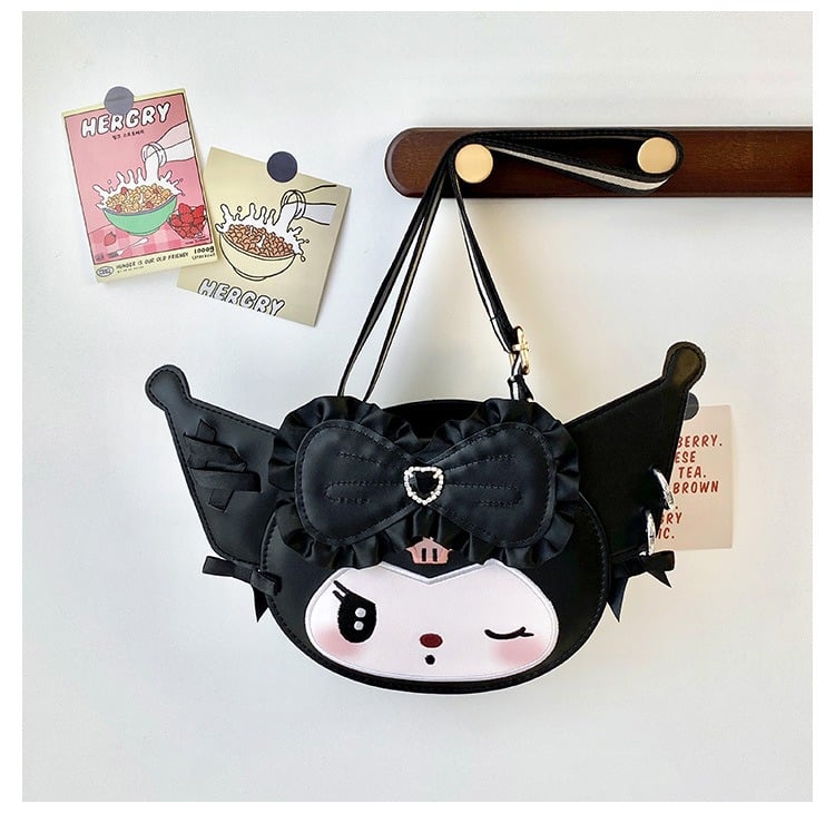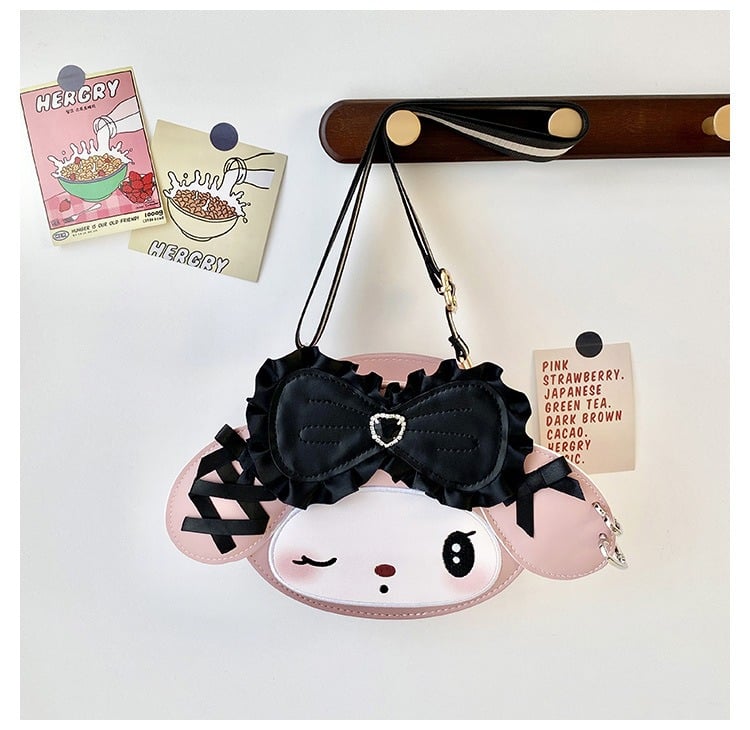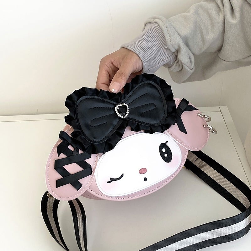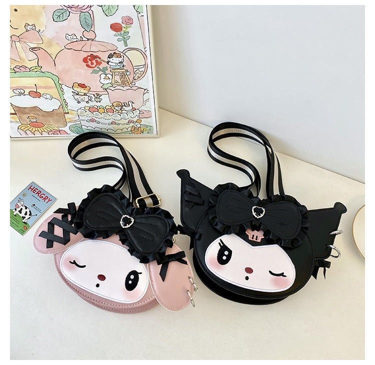 Showcase your unique style with this adorable yet edgy crossbody bag. Choose between the mischievous Kuromi or the sweet My Melody, each featuring an oversized, eye-catching bowknot that adds a touch of dramatic flair. With its distinct gothic vibe combined with irresistible kawaii charm, this bag is perfect for carrying your essentials while making a bold fashion statement. It's the ultimate accessory for fans who love a blend of cute and cool.