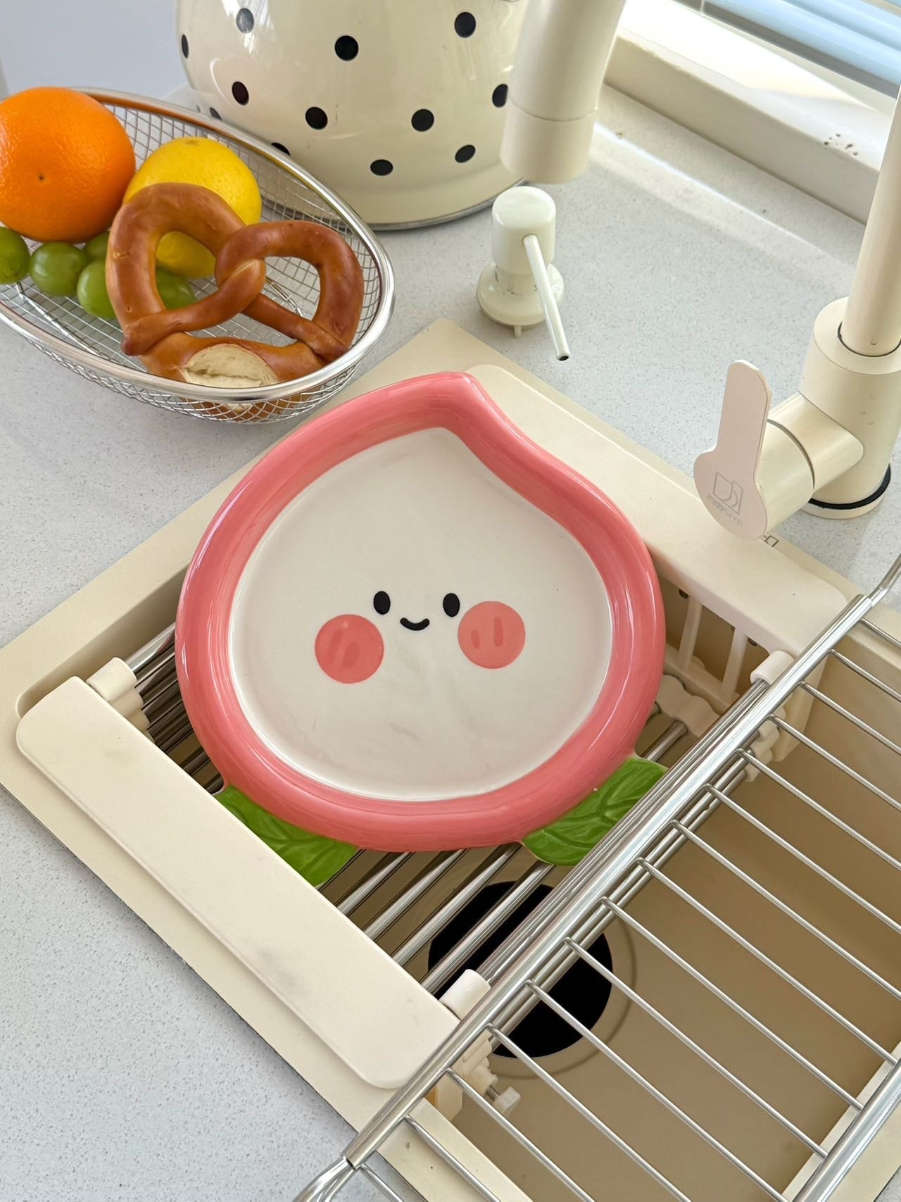 Bring a delightful touch to your table with this Sweet Peach Shaped Plate. Perfect for snacks, desserts, or serving small appetizers, its adorable design instantly adds a whimsical charm. Crafted from durable ceramic, this plate measures 21.5x21.5x4.6cm, offering a generous space for your treats. It’s ideal for everyday use or for brightening up a special occasion. Serve up some sweetness!