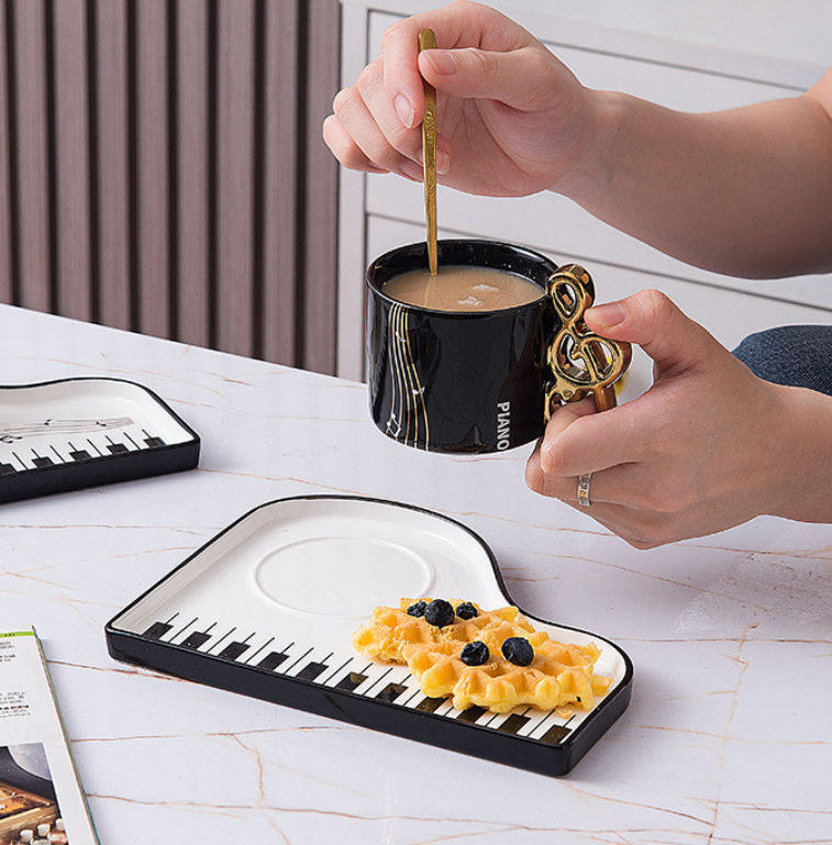 Strike a chord with your morning routine! This unique ceramic cup and saucer set is designed to look like a miniature piano keyboard. Perfect for music lovers and those who appreciate creative design, the cup features black and white keys, and the saucer acts as the full keyboard base. Enjoy your coffee or tea in style. It's a delightful, whimsical addition to any kitchen or office, and a perfect gift for the musician in your life.