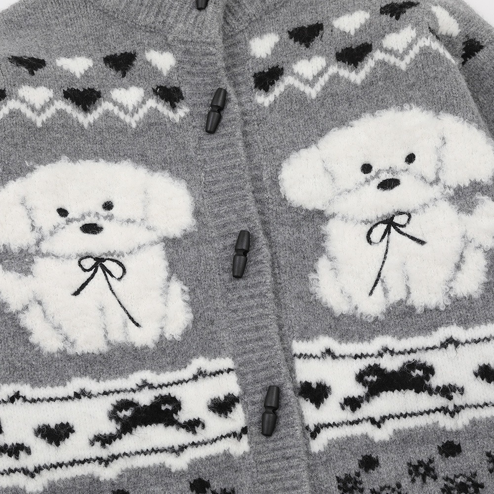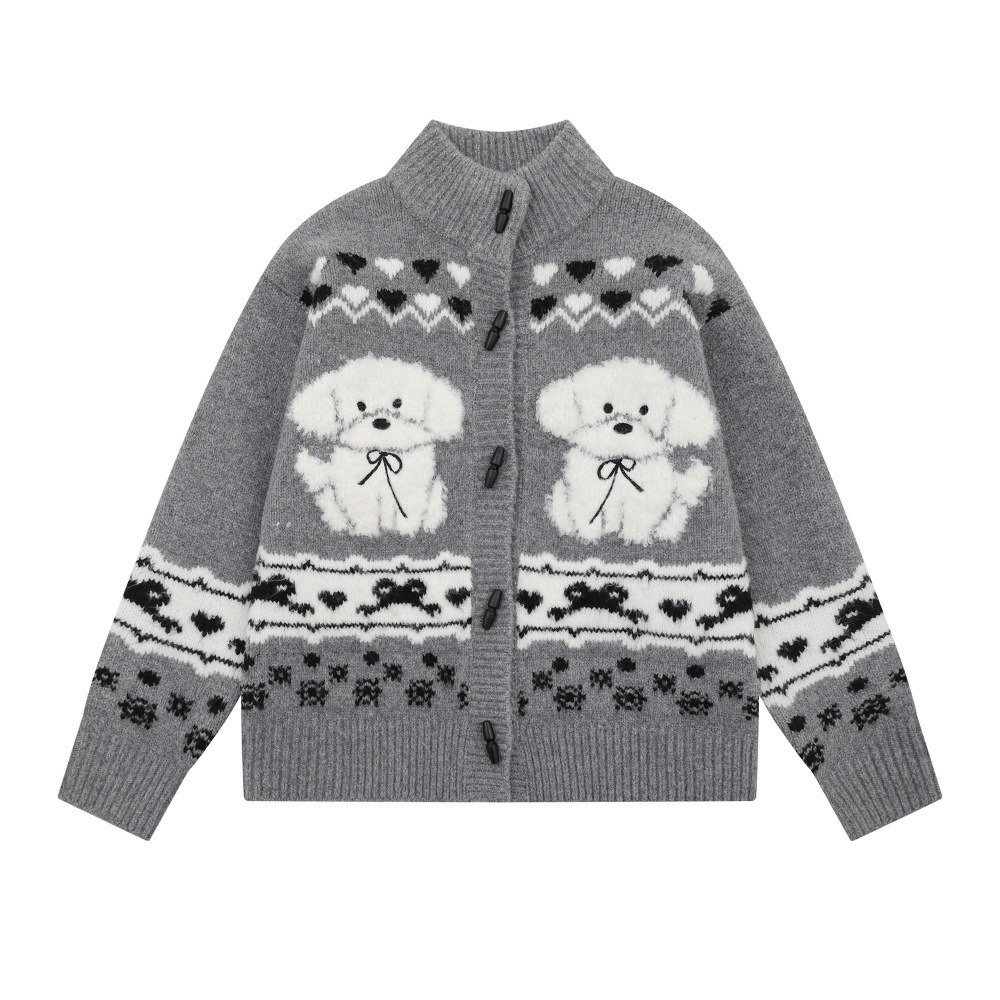 Wrap yourself in cozy cuteness with our Puppy Dog Pattern Cardigan! This adorable knit features a delightful array of sweet puppies and charming love hearts, making it perfect for animal lovers. Designed with a stylish high neck for extra warmth and a relaxed fit, this cardigan is ideal for layering. Add a playful touch to your casual look while staying snug and stylish. It’s the ultimate statement piece for a cozy, cute outfit!
