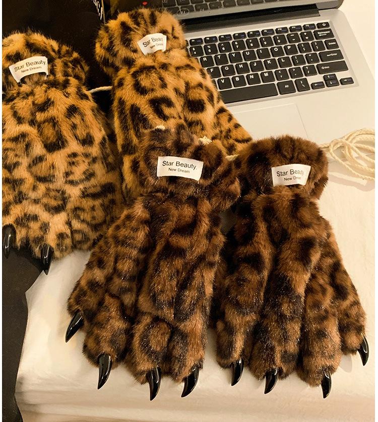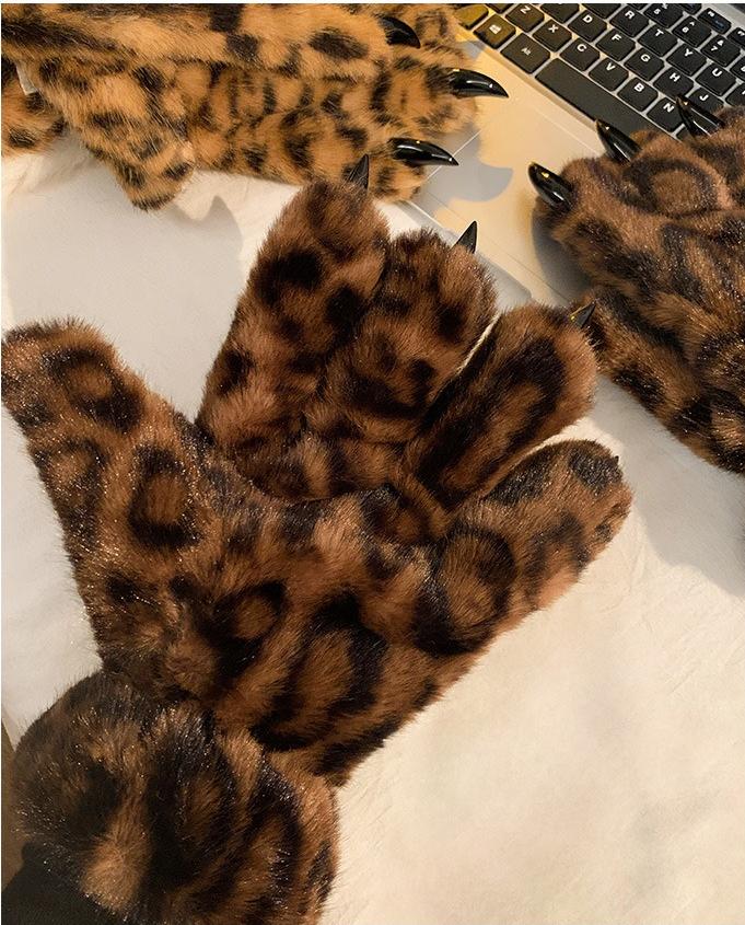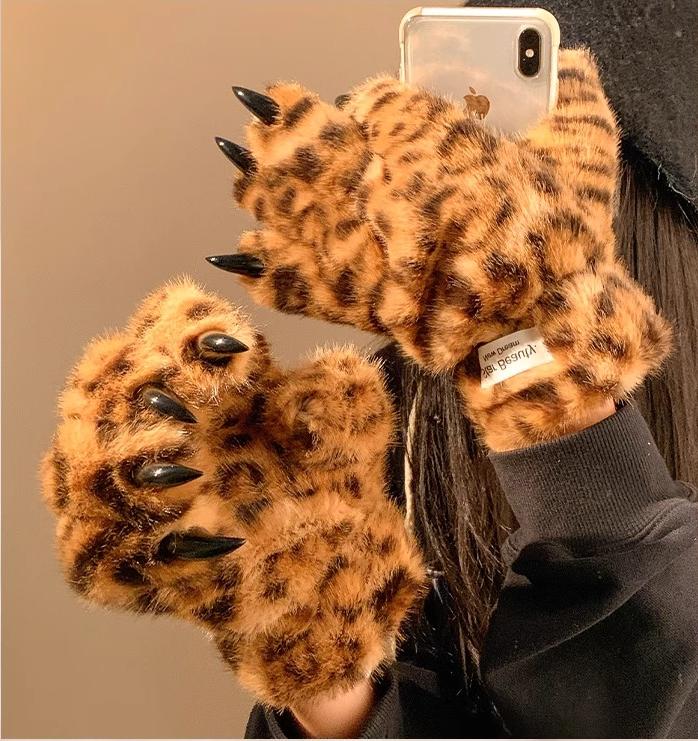 Leopard Plush Nail Gloves: Unleash Your Wild Side
