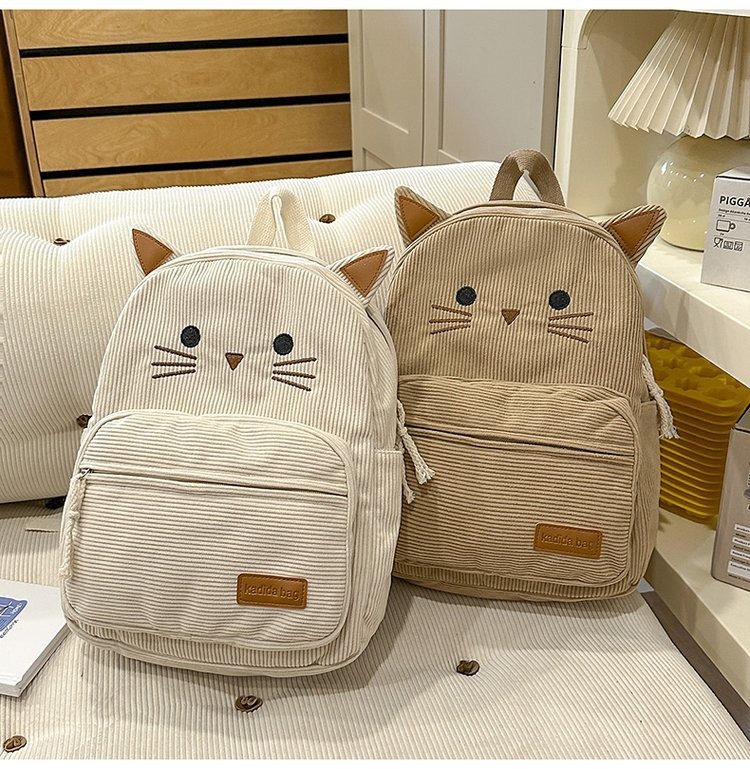 Carry your essentials in ultimate style with our Cute Cat Ears Corduroy Backpack! Made from soft, touchable corduroy fabric, this backpack features playful cat ears and a beautifully embroidered cute cat face on the front pocket. It’s the purr-fect blend of charm and practicality for school, travel, or daily adventures. Show off your feline love with this must-have accessory!