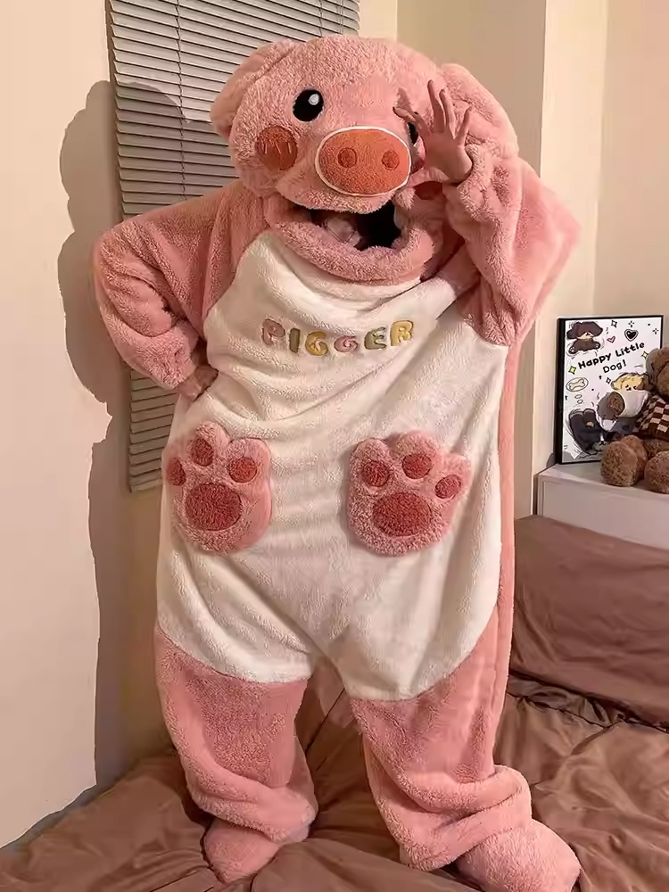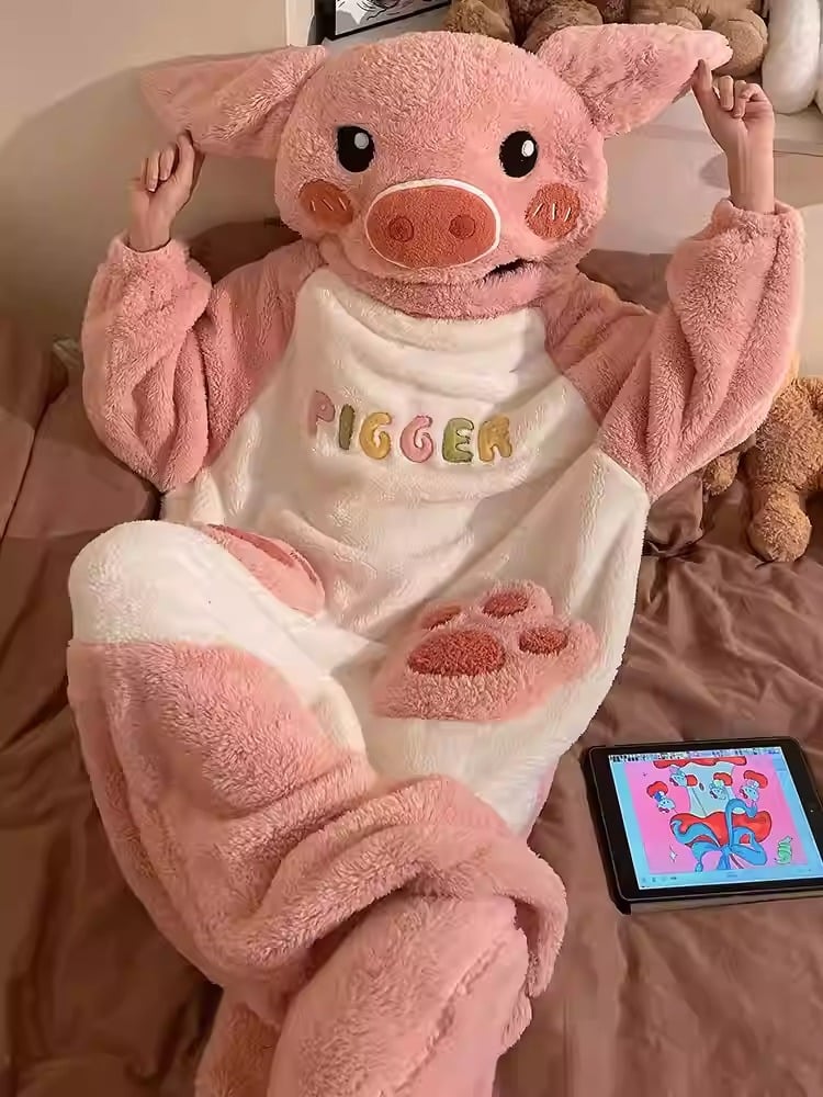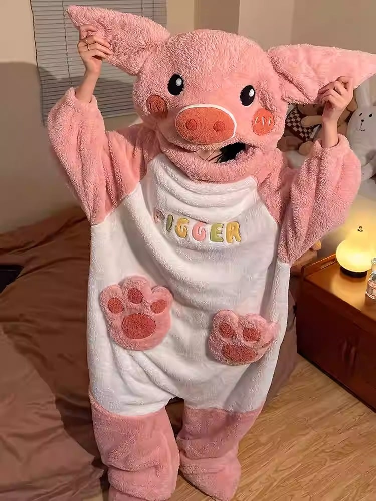 Embrace ultimate comfort and cuteness with our adorable Pink Pig Fleece Onesie! Crafted from ultra-soft, warm fleece, this onesie is perfect for cozy nights in, lazy weekends, or fun costume parties. The charming design features a delightfully cute pig head hood, complete with floppy ears and an embroidered snout. Slip into this playful outfit and enjoy unmatched warmth and softness. It's the sweetest way to stay snug!